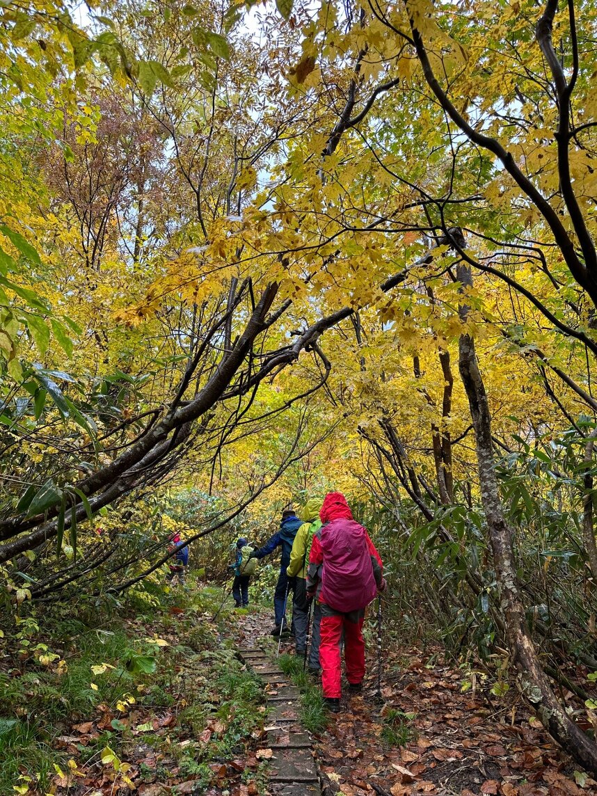 1日目の森吉山はあいにくの雨模様でしたが、紅葉は最高!黄色のトンネルがきれいです★