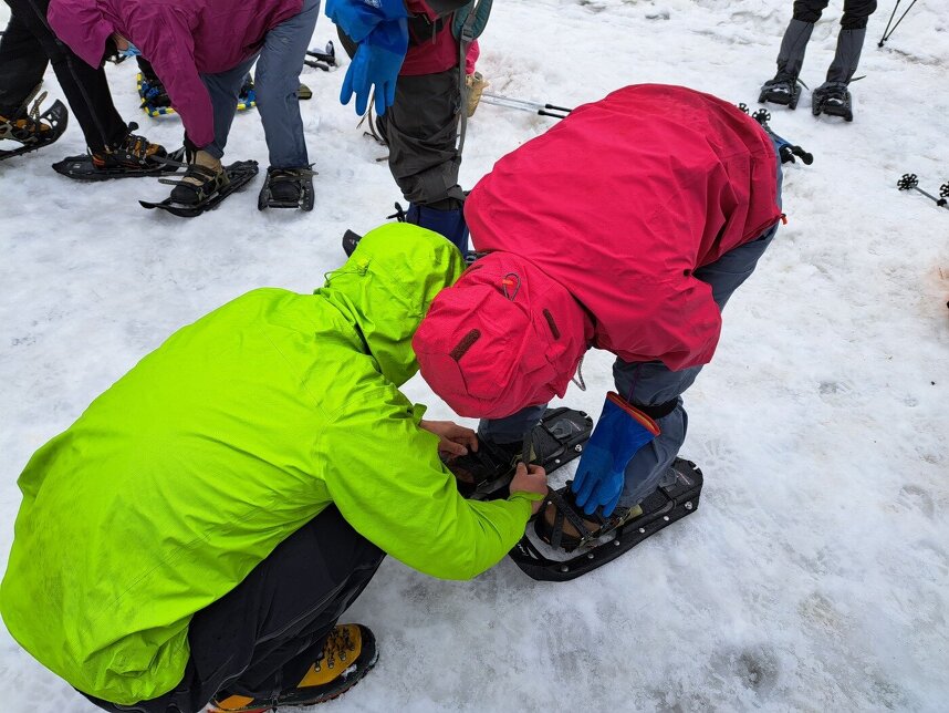 スノーシューの履き方や歩き方のレクチャーもしてくれました