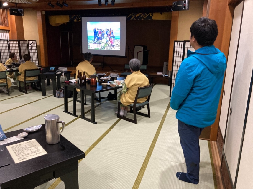 そして今回は初の試みとして、夜はお客様といっしょに今年の山旅を振り返るムービーの上映会をさせていただきました。