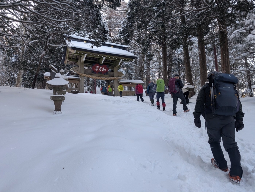 前日の雪で膝まで積雪がありましたが、無事に敬慎院に到着。