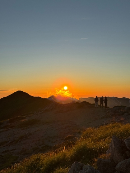 さらに寝袋やマット、食料など、いつもよりも重たい荷物を背負っての登山に、全身から汗が止まりません!雨が降ってるわけでもないのに、全身びしょ濡れになりながらとにかく登りました。やっと稜線に出るとご褒美のような景色が!