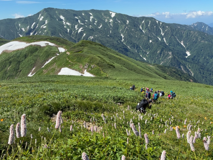 飯豊連峰はお客様はもちろんのこと、添乗員もいつもの山旅以上に準備をして覚悟を決めて登る山です。それでも、稜線を歩いているときの気持ちよさ、山の迫力は他の山ではなかなか味わえません。飯豊連峰に挑戦したい方、ぜひトラマスの山旅で飯豊連峰をお楽しみいただけると嬉しいです。