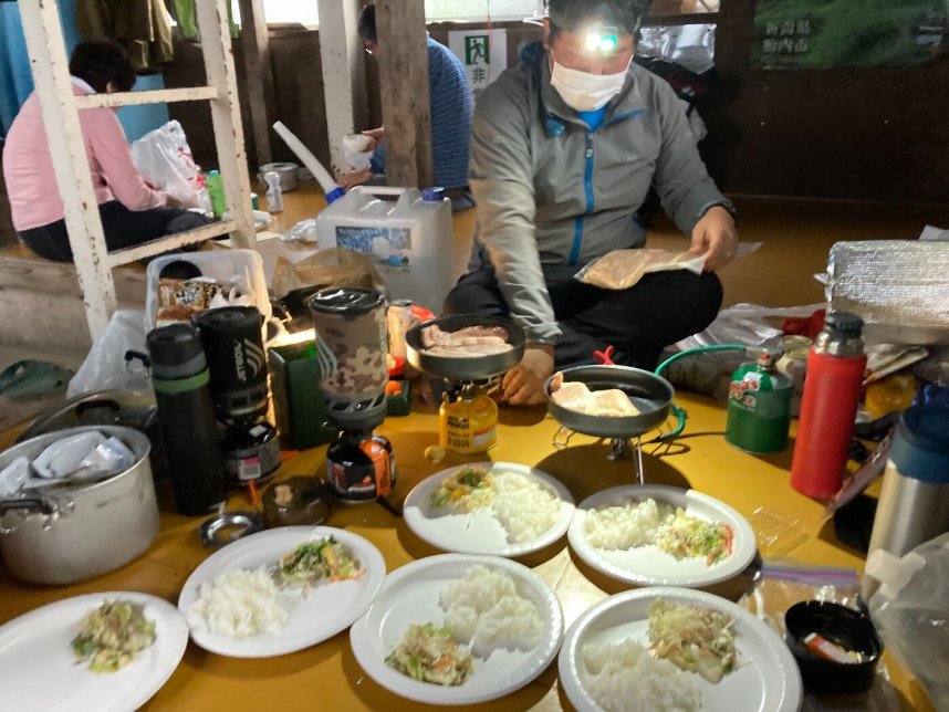 避難小屋に宿泊のツアーは基本添乗員が食事を用意します!