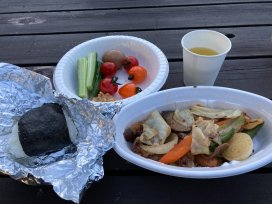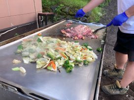 夕食はなんとバーベキュー。夕暮れの富士吉田市を眼下に見ながら、疲れた体に栄養補給。夜空には星がきらめいていました。