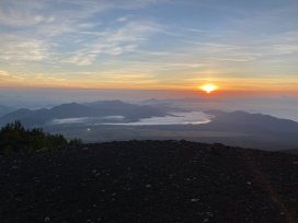 本8合目から見る夕焼けや朝焼けは、雲海の白と空の青そしてオレンジ、ピンク、紫に変わっていくグラデーションがとても綺麗で、この世の景色とは思えない絶景を目の前にただただ圧倒されました。