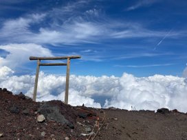 9合目を超え、一歩一歩が小さくなっていきます。深呼吸を繰り返しながら、ゆっくりでも着実に登っていくと、、、山頂です!!!