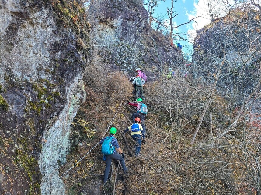 真田家ゆかりの山『岩櫃山』 大河ドラマで真田家が注目されましたが、そのときに是非登ってみたいなと思っていた岩櫃山 それからかれこれ6年ほど歳月がたちようやくいくことができました。 紅葉は終わっている箇所もありましたが、それでも岩に映える紅葉はとってもきれいでした。 実際にぼってみますと鎖場の連続でまるで修験者・・・ でも登りきったあとの達成感はひとしおでした! 以上大塚でした! 明日は京都トレイルを書きます!