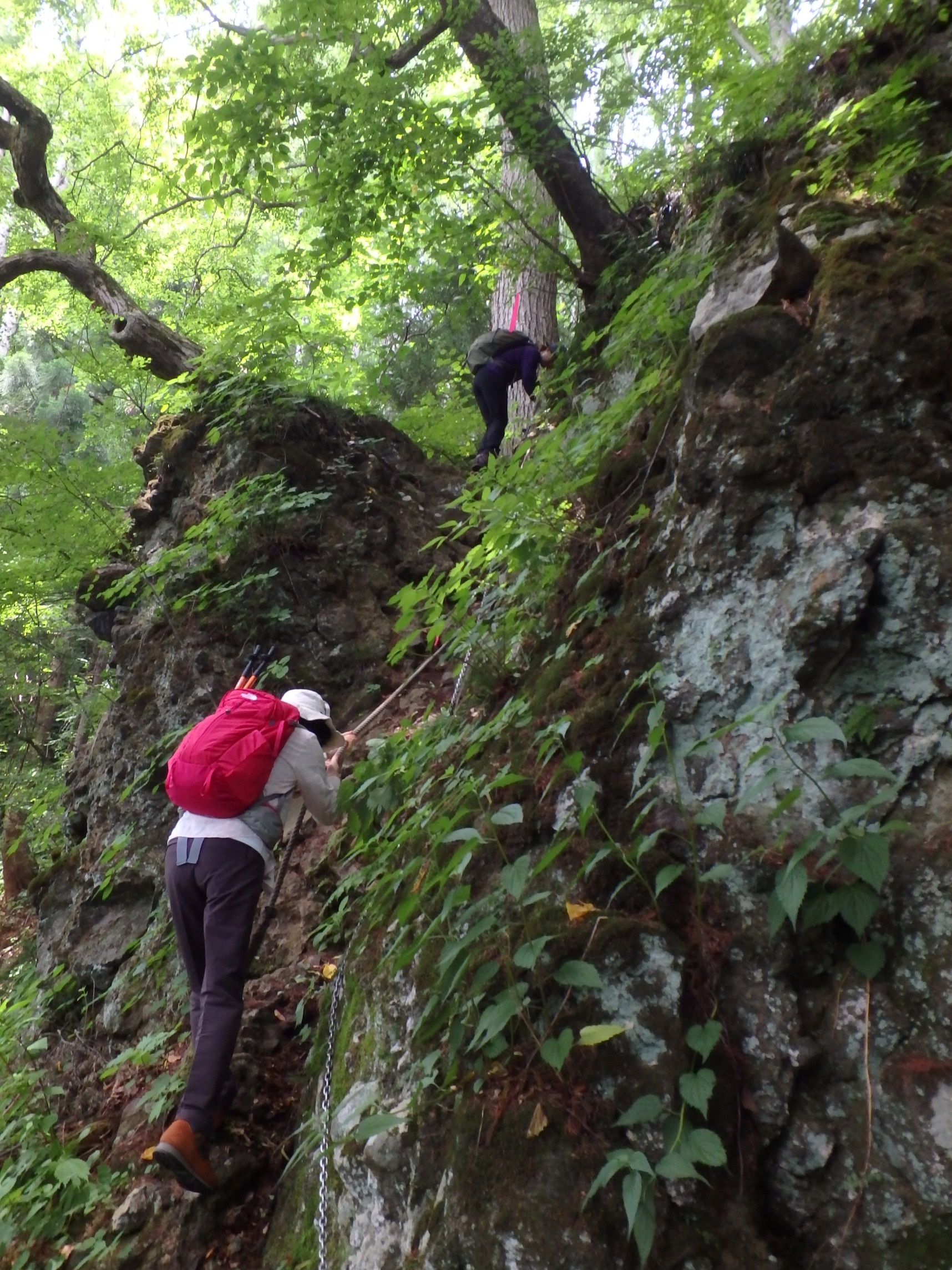 今回のトラマス登山教室は、岩場の練習などを組み入れてます。初日の飯縄山は行動時間としては約6時間半歩きます。ここでは歩き方などの練習になります。2日目は岩場と鎖場の練習がメインとなります。登山シーズンに向けて歩き方やバランス感覚、そして体力の再確認をすることも今回の目的の一つです。実際に歩いていただいて添乗員そして登山ガイドの中野さんに今後の登山に関してのご相談も承けたまります!