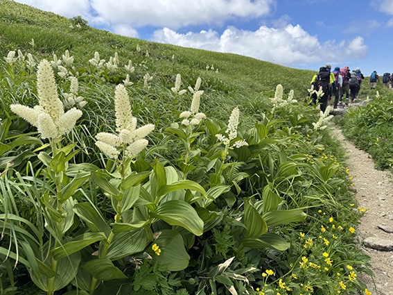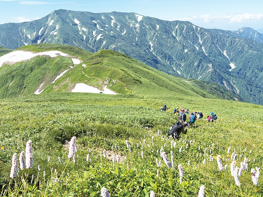コース番号:A157-34募集中 東北随一のスケールと高山植物が咲き誇る 固有種 イイデリンドウ求めて 山形県・福島県・新潟県 飯豊連峰縦走 2泊3日 109,000円 体力度:6 技術度:3 トラマス屈指のハードなコースの飯豊山。どこから登っても辛い山で有名ですが、登りきった先の稜線歩きはまるで天国のよう。夏のこの時期は固有種『イイデリンドウ』が咲き、高山植物が咲き誇ります。日本海のパノラマと飯豊本山へと続く稜線。大変だったからこそすべての景色に感動します。アルプスには負けないスケールと咲き誇る花々。感動する3日間をぜひご一緒しましょう‼ 百名山 現地登山ガイド同行 登山添乗員同行 下山後入浴有 自炊コース ≫ アイコンの説明について ツアー詳細 期間 7月22日(水) ~ 7月24日(金) 宿泊数 2泊3日 旅行代金 109,000円 最少催行 7 名 募集人員 12 名 旅程 順番 日付 旅程 食事 1 7/22(水) 長岡(3:20)~トラマス(4:10)~新潟駅(4:50)~豊栄(5:20)=飯豊山荘(410m)・・・湯沢峰・・・〈梶川尾根〉・・・扇ノ地紙・・・門内小屋(1,870m)【泊】 ■実歩行時間:約7時間半・7km【累積標高:1520m】 朝:〇 昼:弁 夕:炊 2 7/23(木) 小屋・・・門内岳・・・北股岳・・・梅花皮小屋・・・烏帽子岳・・・御西小屋(昼食)・・・飯豊山(2,160m)・・・本山小屋(2,102m)【泊】 ■実歩行時間:約8時間半・11.5km【累積標高:1100m】 朝:炊 昼:炊 夕:炊 3 7/24(金) 小屋・・・切合小屋・・・三国岳・・・牛ヶ岩山・・・五段山・・・川入切合・・・ブドウ沢登山口(830m)=いいで白川荘/入浴・遅昼食=豊栄 (18:00)~新潟駅(18:30)~トラマス(19:10)~長岡(20:00) ■実歩行時間:約7時間半・11km【累積標高:1550m】 朝:炊 昼:〇 夕:- ≫ 移動手段の記号について≫ 乗車場所MAPを見る 備考 添乗員おすすめ 飯豊・朝日連峰は無人小屋に宿泊するため、食事は自炊となります。トラマスでは自炊のツアーでも快適に過ごしていただくため、食料の準備、お食事の提供はスタッフが腕によりをかけてお作りいたします!また当日は現地ガイド1名、ポーター1名、登山添乗員1名の3名体制でご案内いたしますので、安心してご参加ください!※自炊食料お一人500g~800g程度の運搬をお願い致します。 イイデリンドウ ■旅行企画・実施 株式会社トラベルマスターズ 〒953-0054 新潟市西蒲区漆山8200番地 新潟県知事登録旅行業 第2-259号|(一社)全国旅行業協会正会員|総合旅行業務取扱管理者:岡村澄代 ◆旅行代金は税込価格です。 ◆掲載されている写真はイメージが含まれています。 ◆天候、運輸機関のスケジュールの変更・遅延により、宿泊地変更や訪問順序を変更する場合がございます。予めご了承ください。 ◆お申込のお客様は詳しい旅行条件を説明した書面(旅行条件書)を事前にご確認の上お申し込みください。 ◆最少催行人員:20名様(一部コースを除く/催行確定は10日前までにご連絡いたします) Tweet