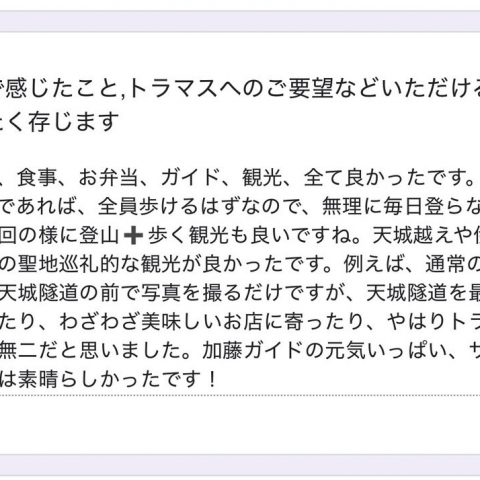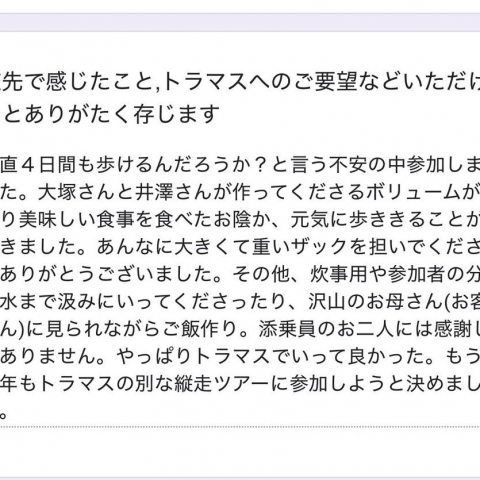 トラマスのツアーは2回目です。1回目は3年くらい前に友達5人で尾瀬...